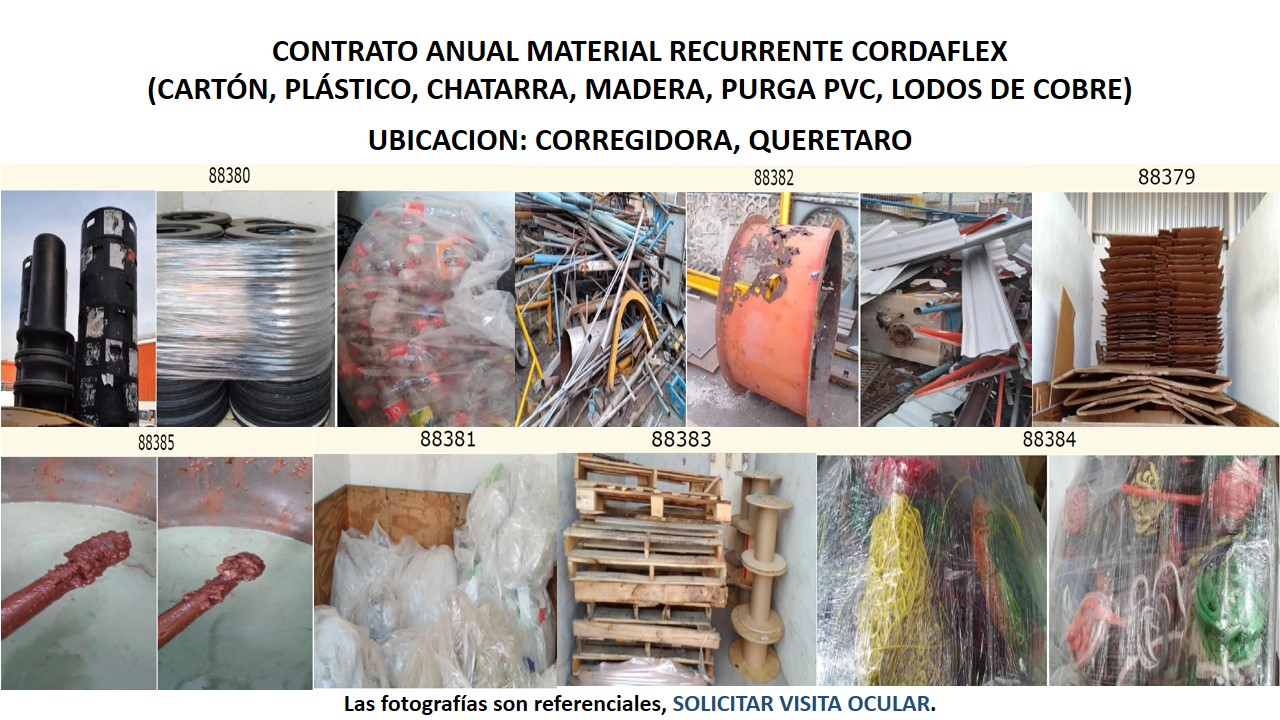 Las imágenes utilizadas pueden ser referenciales, el material a retirar puede no estar en las condiciones demostradas aquí. Es responsabilidad del comprador revisar físicamente el material para conocer todas las especificaciones y condiciones del mismo antes de ofertar. No habrá visitas una vez cerrada la subasta.
