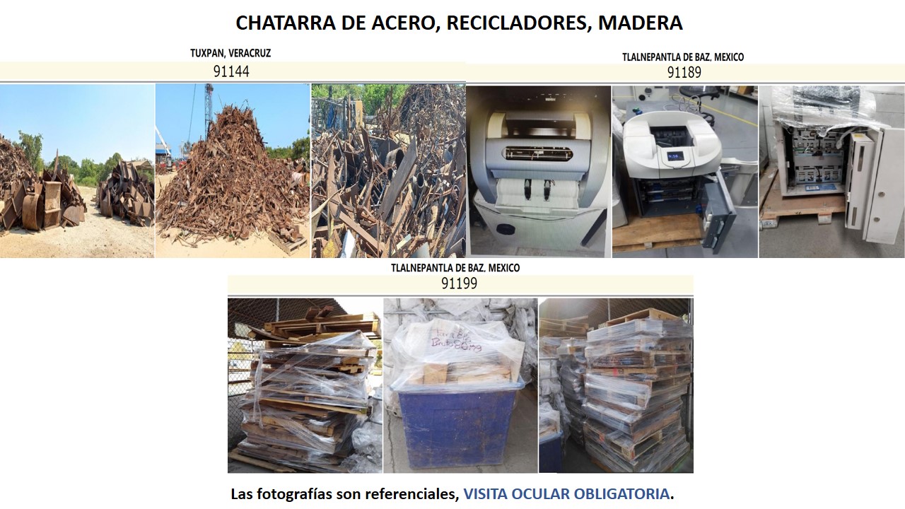 Las imágenes utilizadas pueden ser referenciales, el material a retirar puede no estar en las condiciones demostradas aquí. Es responsabilidad del comprador revisar físicamente el material para conocer todas las especificaciones y condiciones del mismo antes de ofertar. No habrá visitas una vez cerrada la subasta.