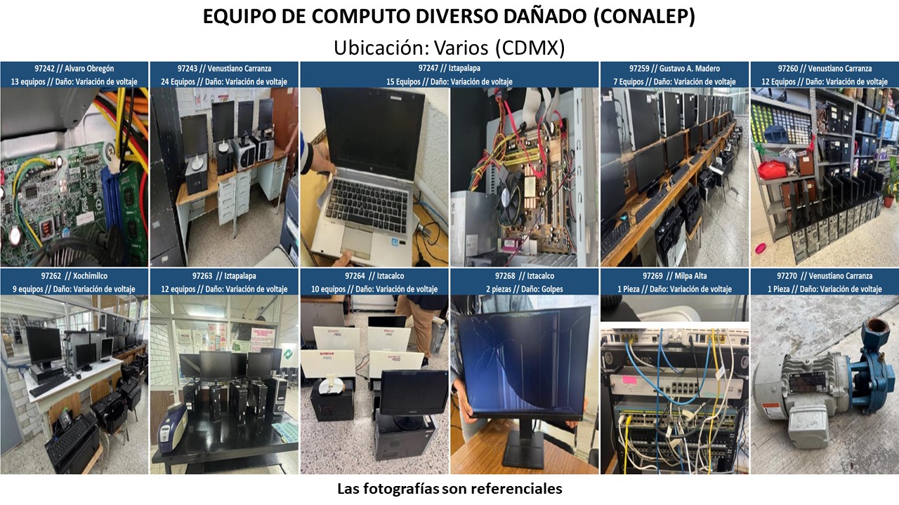 Las imágenes utilizadas pueden ser referenciales, el material a retirar puede no estar en las condiciones demostradas aquí. Es responsabilidad del comprador revisar físicamente el material para conocer todas las especificaciones y condiciones del mismo antes de ofertar. No habrá visitas una vez cerrada la subasta.